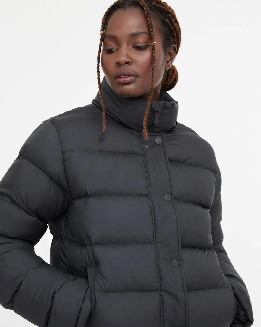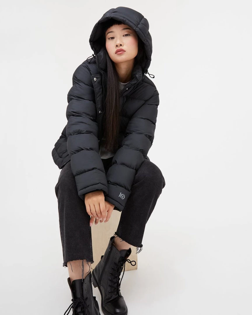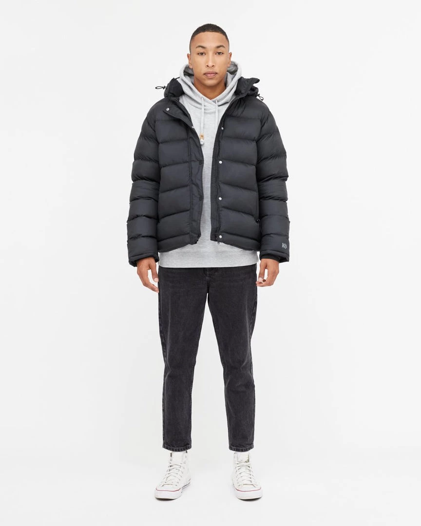 - Regular fit hooded puffer jacket, Fully lined, Bungee drawcord hood with sliders, Zippered and snap front placket with storm flap, Exterior zipper hand pockets, Interior zipper chest pocket, Soft internal cuffs, NATULON® zippers.