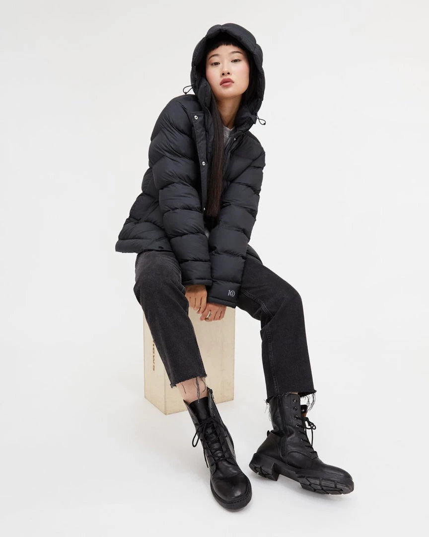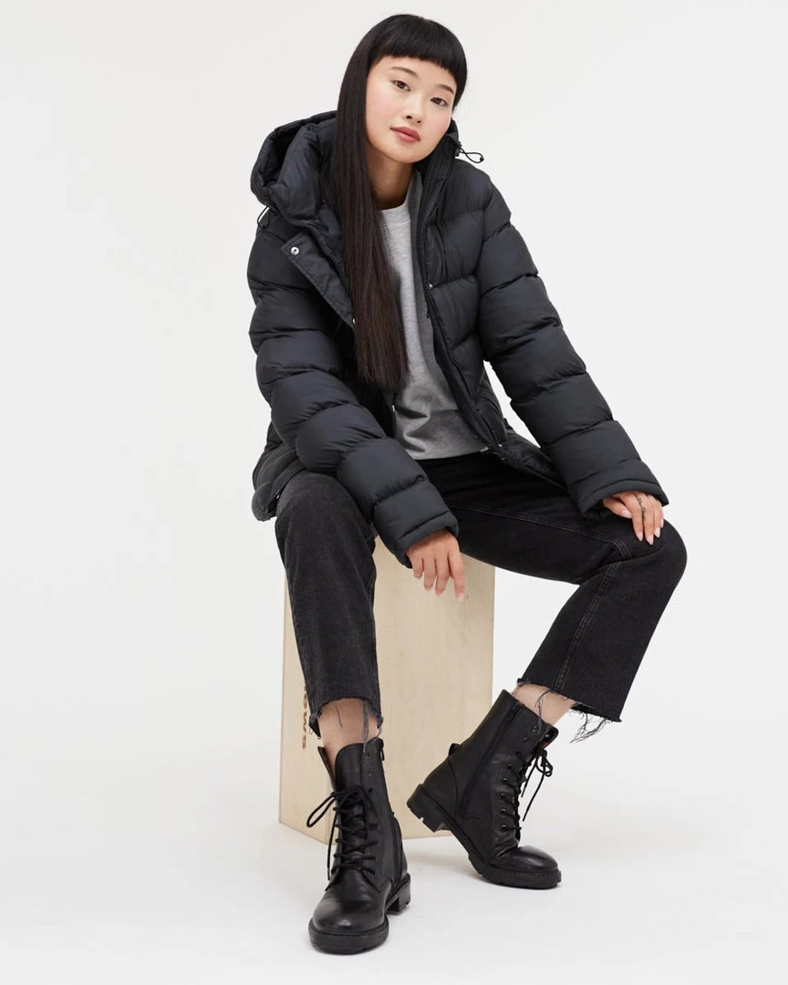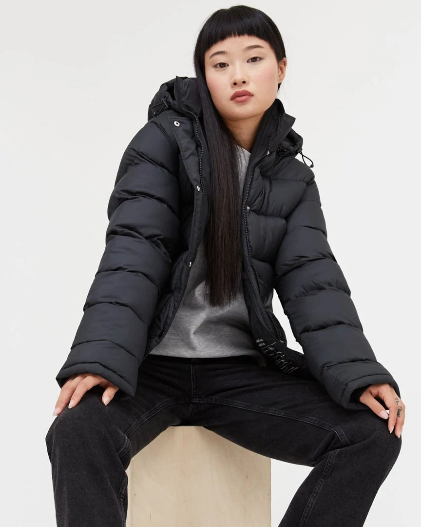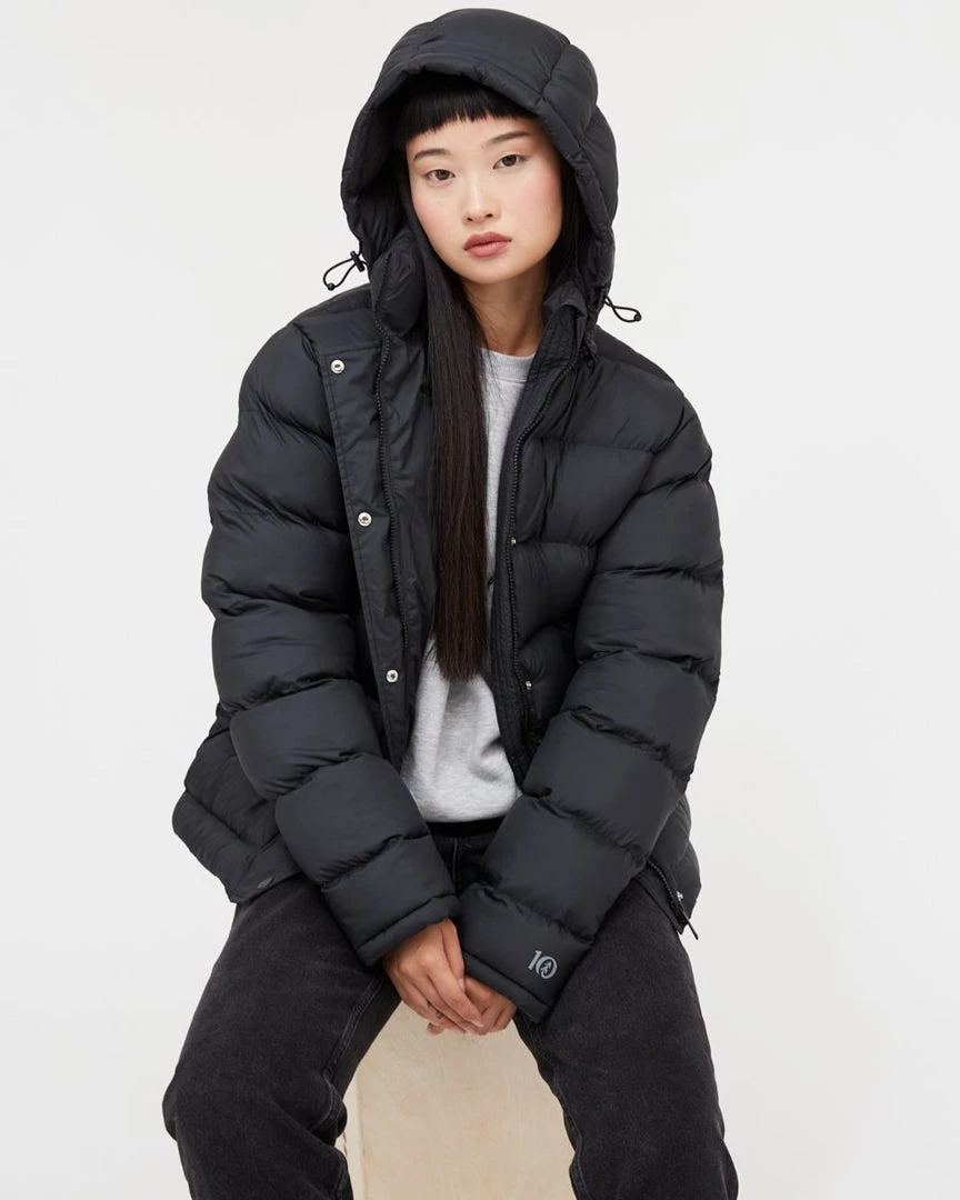 - Regular fit hooded puffer jacket, Fully lined, Bungee drawcord hood with sliders, Zippered and snap front placket with storm flap, Exterior zipper hand pockets, Interior zipper chest pocket, Soft internal cuffs, NATULON® zippers.