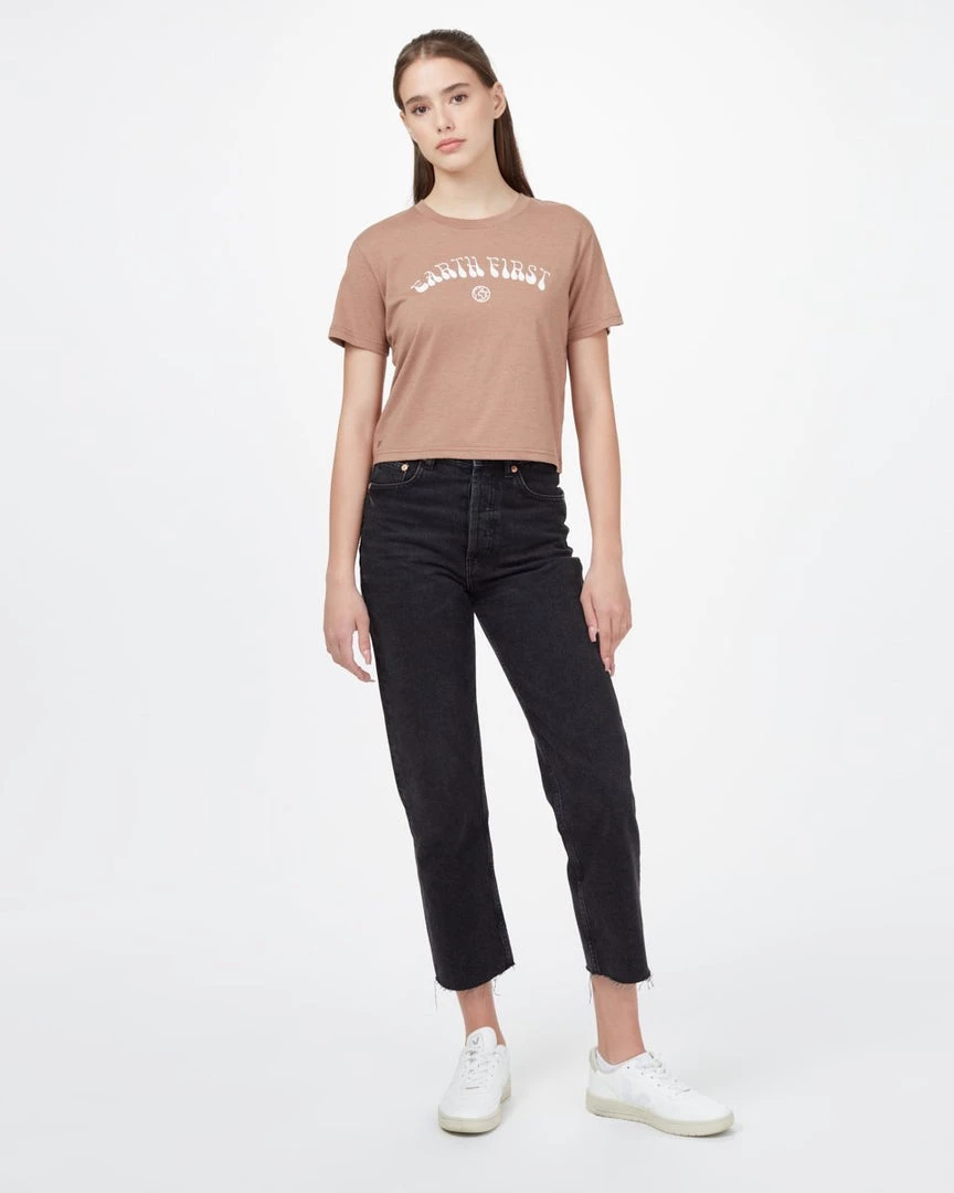 - Relaxed fit cropped crew neck t-shirt with ribbed neck band and TENCEL™ medium stretch fabric