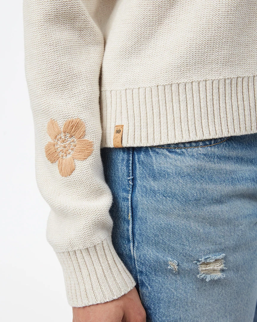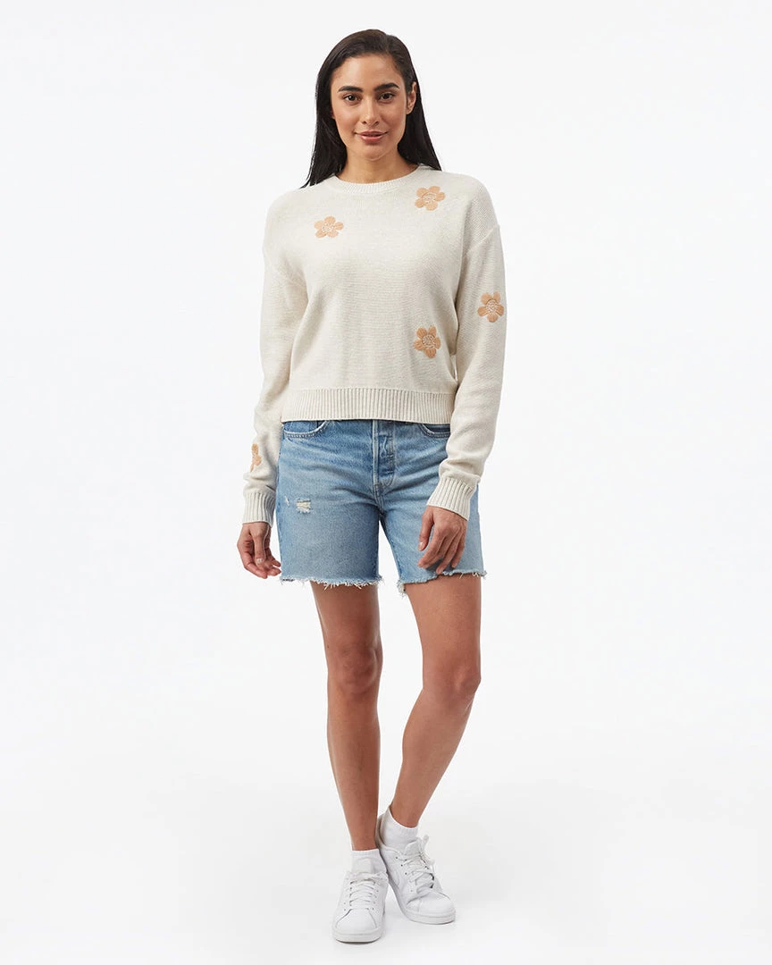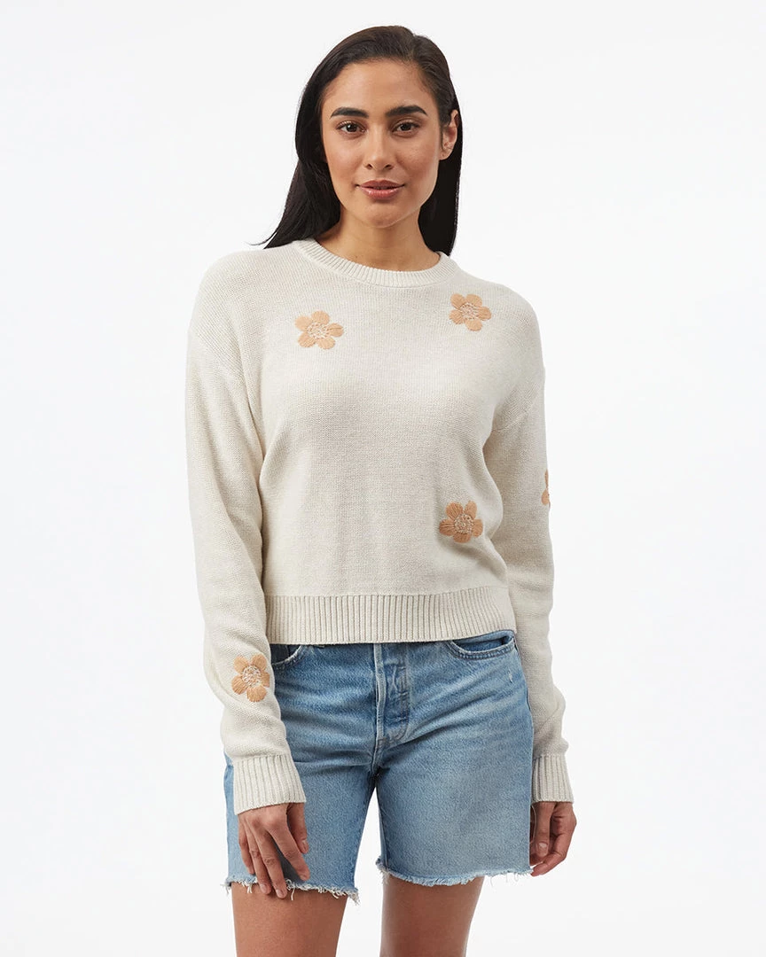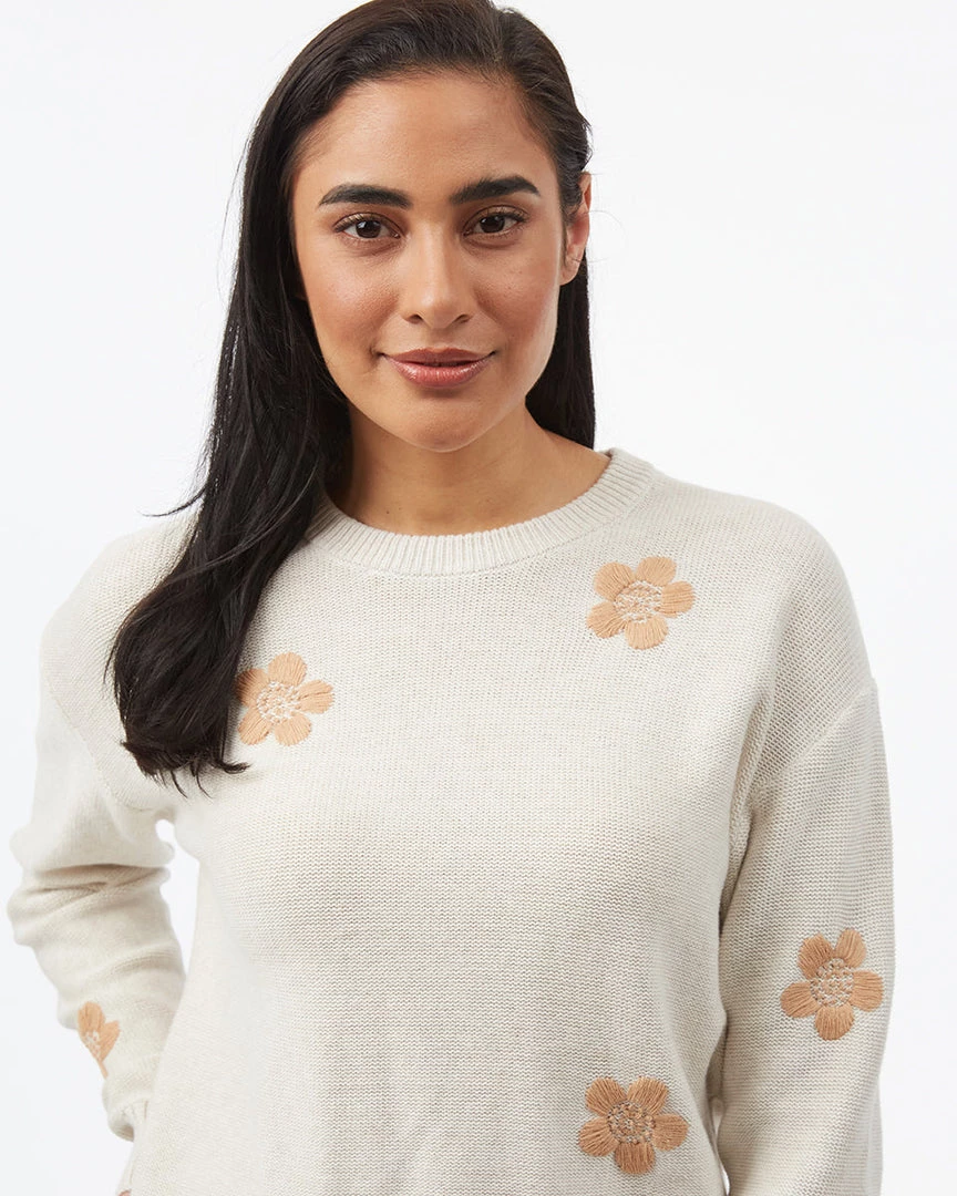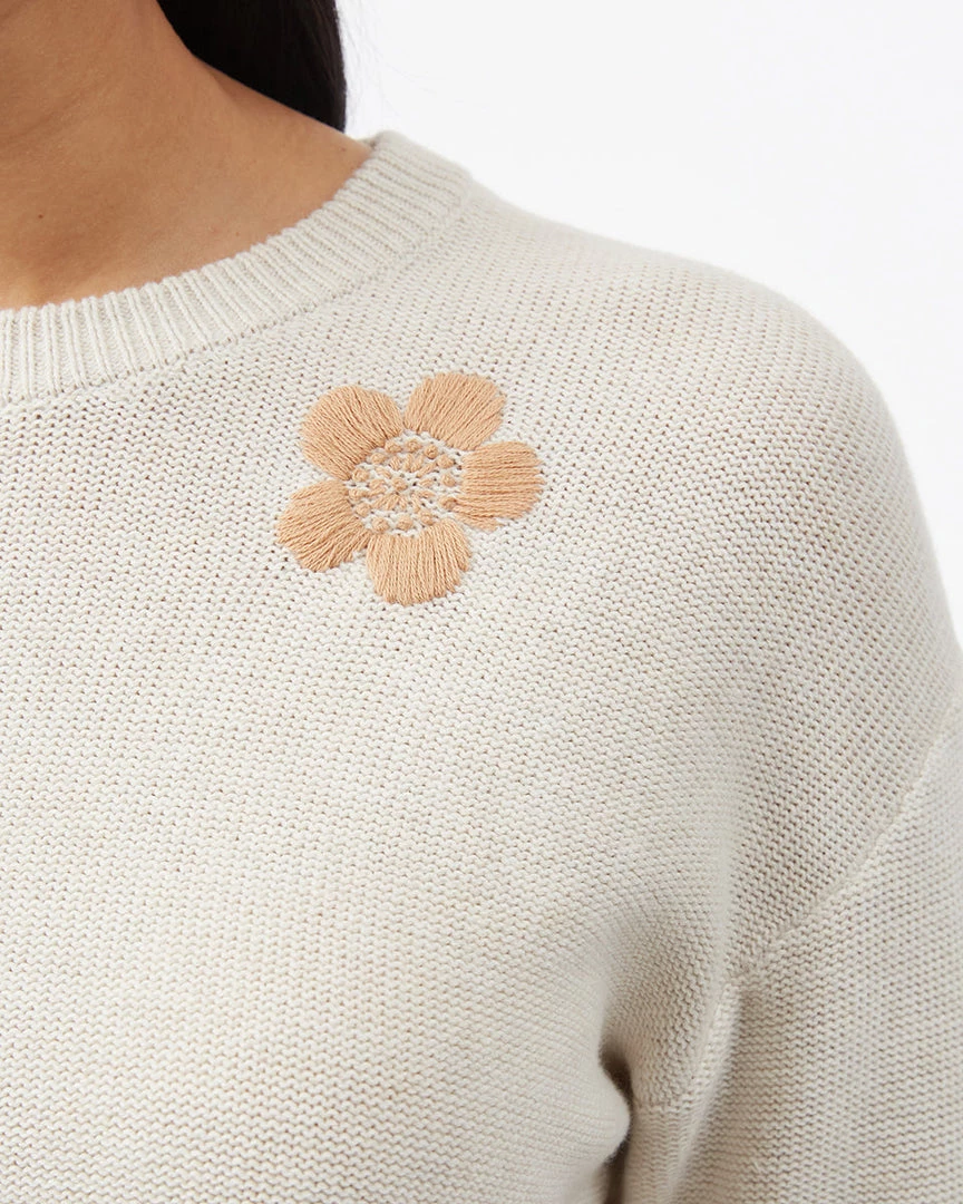 - Relaxed fit crew neck sweater with drop shoulder and hand embroidered flower pattern. High stretch fabric