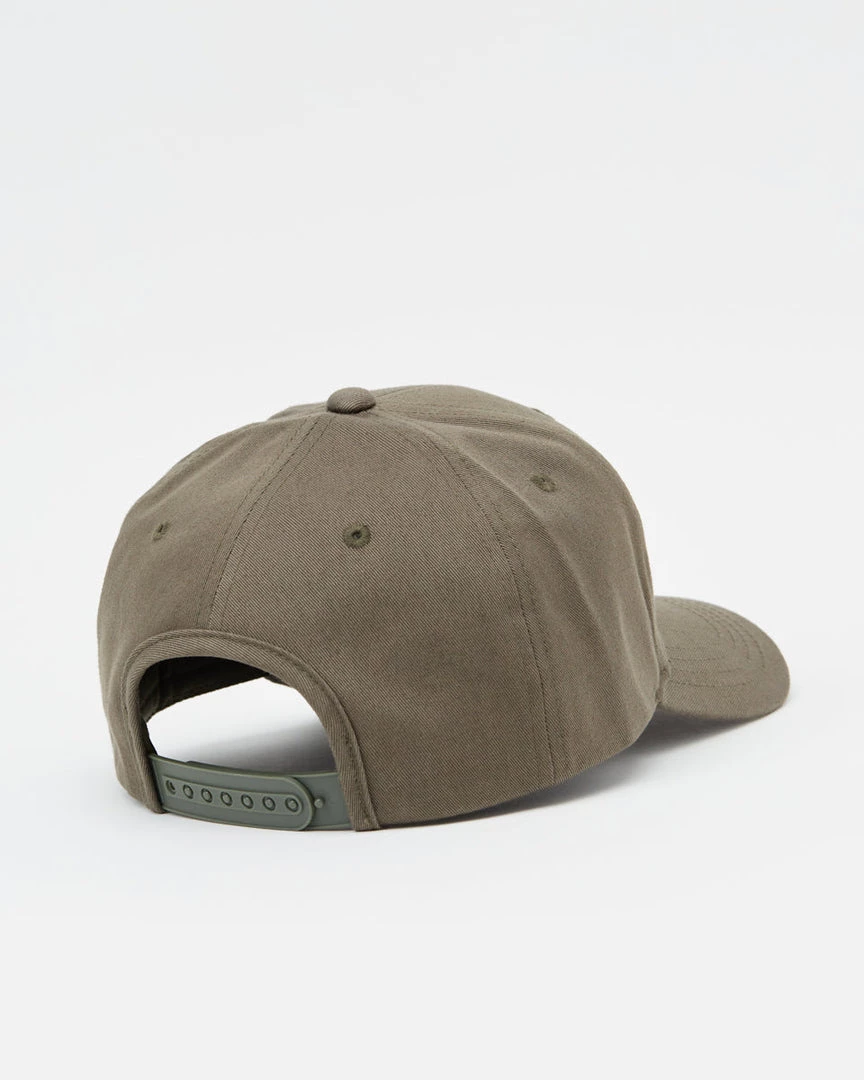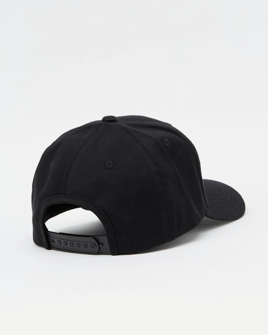 - 6 panel snap closure ball cap with a curved recycled plastic brim, and embroidered artwork.