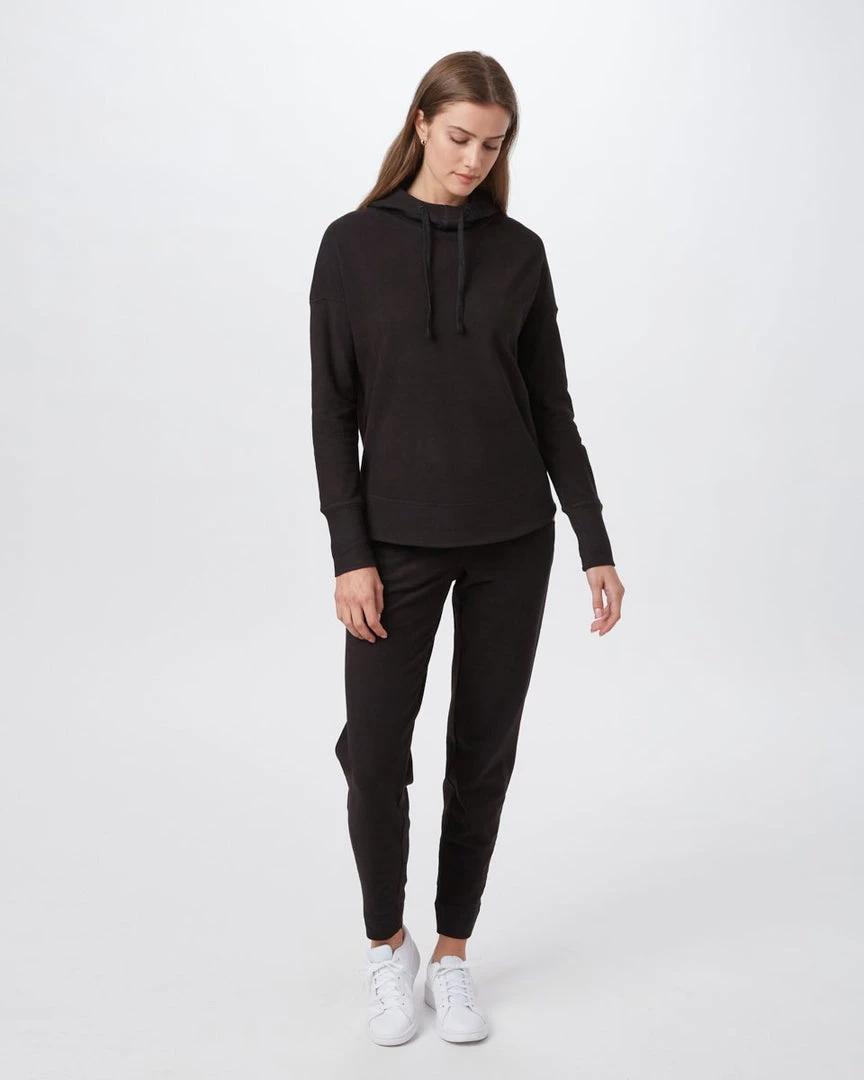 - Regular fit scoop hem hoodie, high/low hem, high stretch
