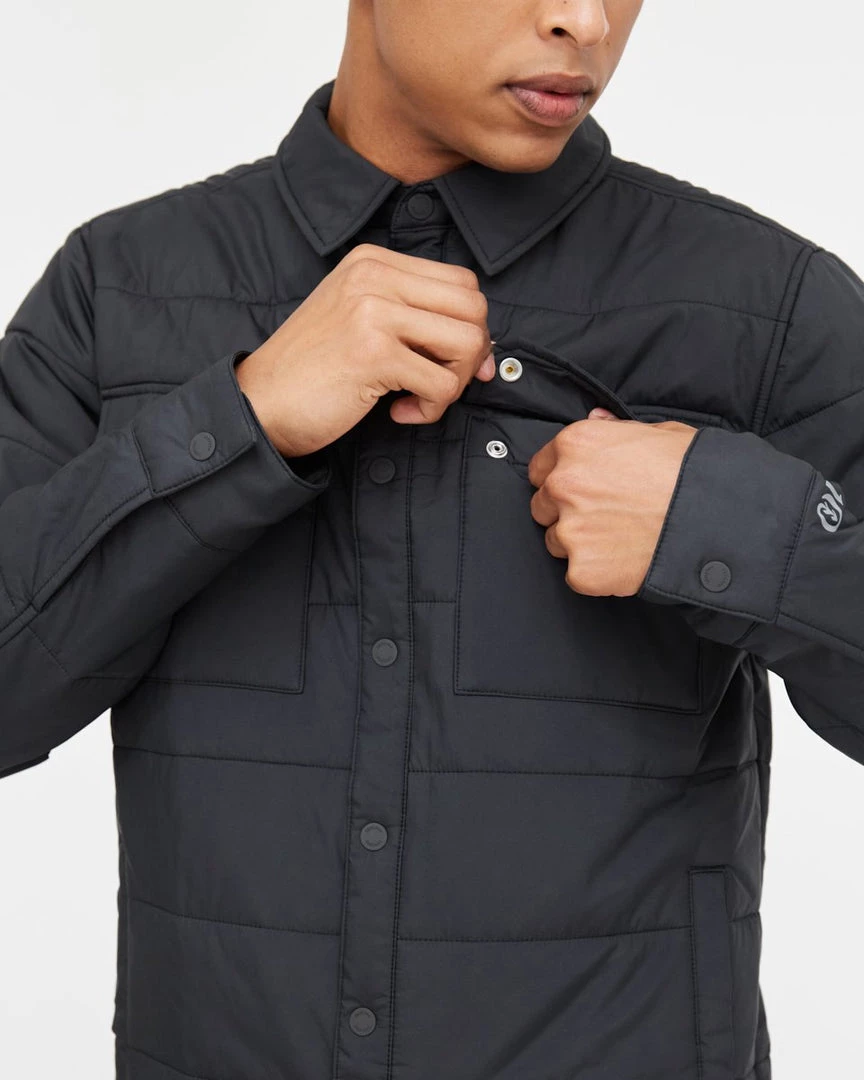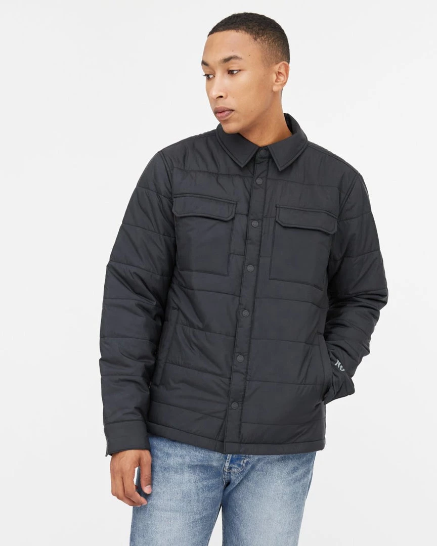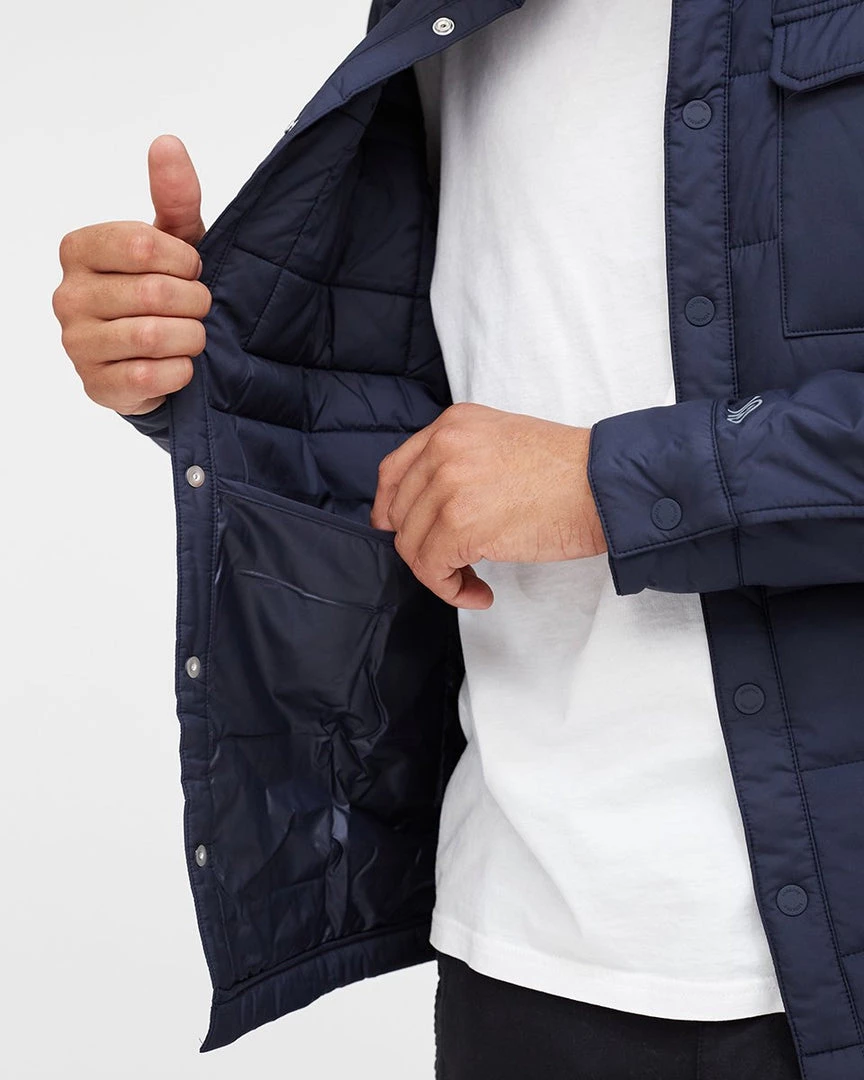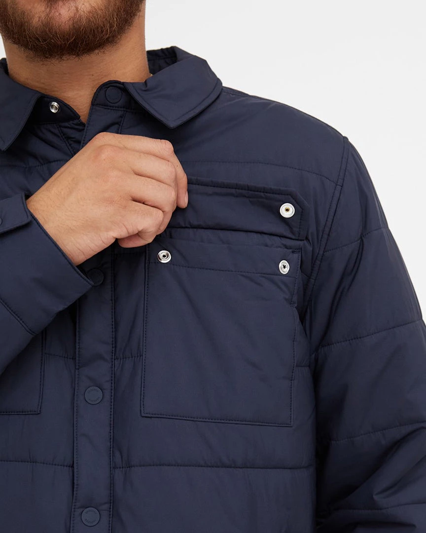 - Fully lined regular fit shirt jacket, Snap front closure, Exterior chest patch pockets, Exterior hand pockets, Interior top entry pockets.