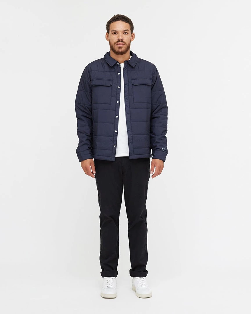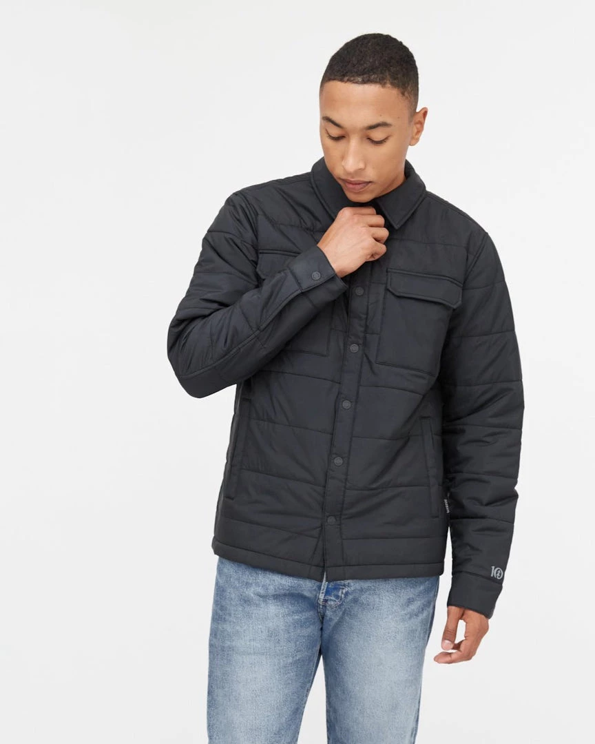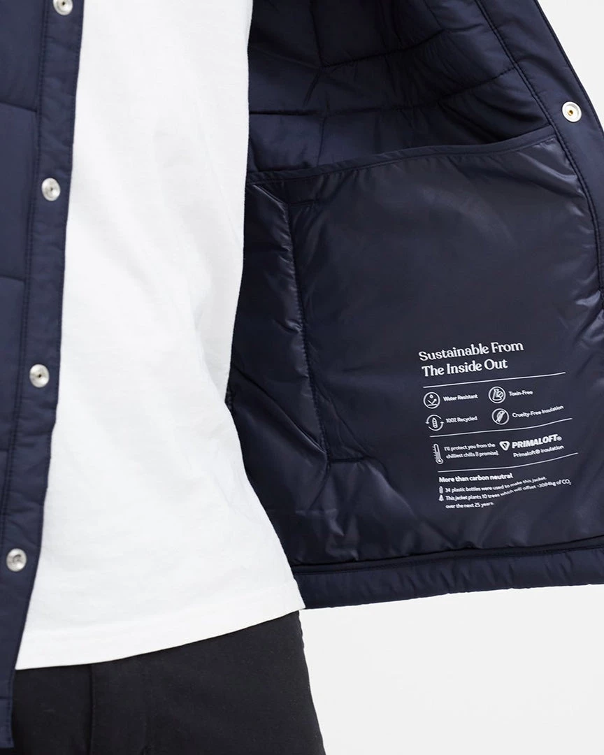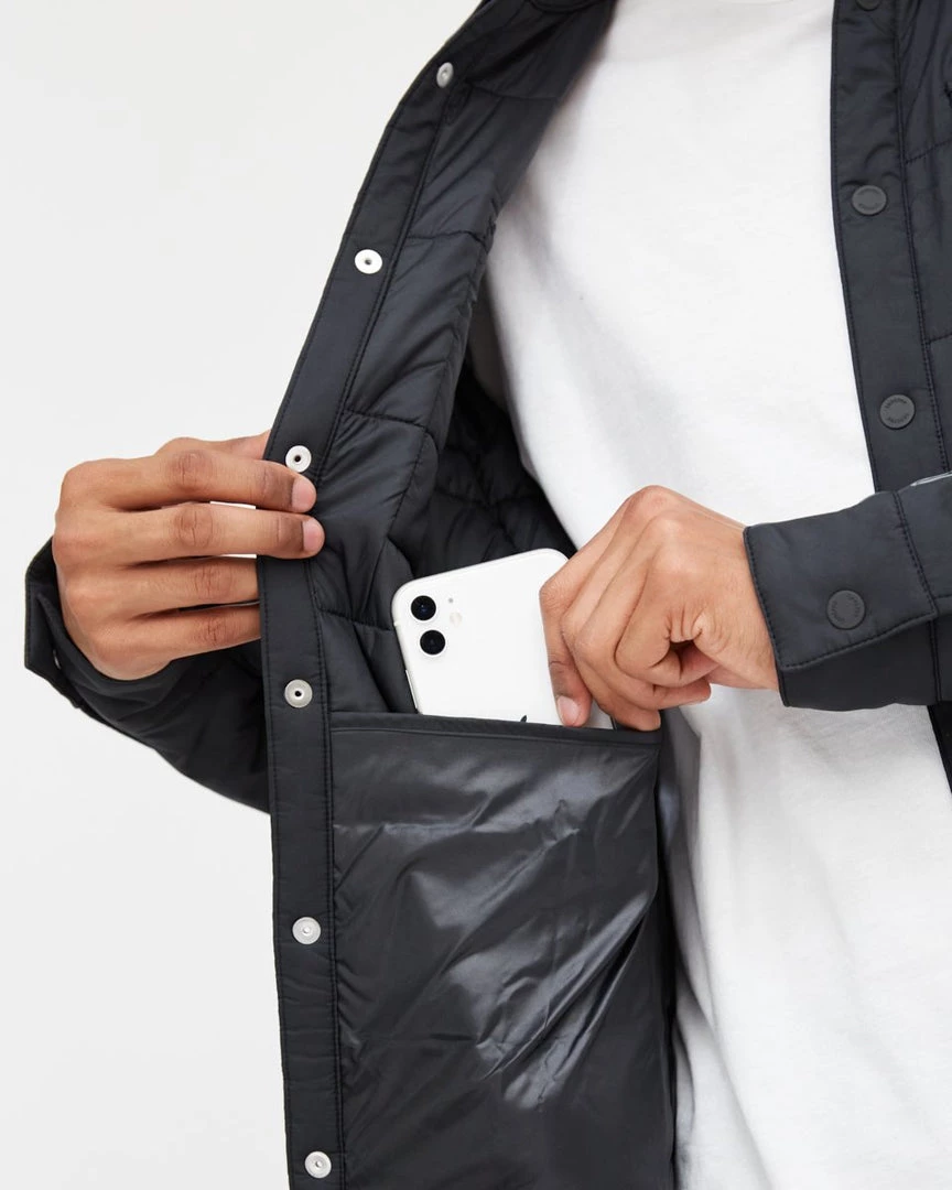 - Fully lined regular fit shirt jacket, Snap front closure, Exterior chest patch pockets, Exterior hand pockets, Interior top entry pockets.