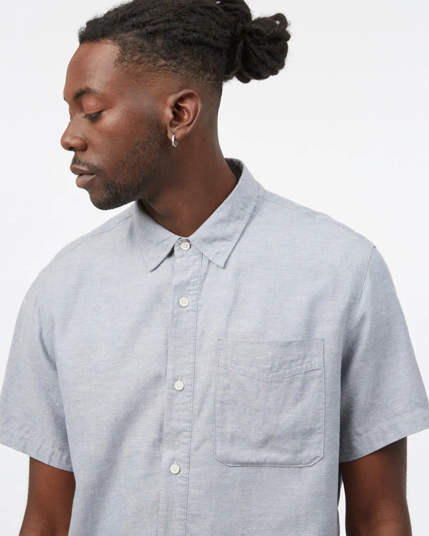 - Low stretch wave regular fit short sleeve collared shirt with left chest patch pocket.