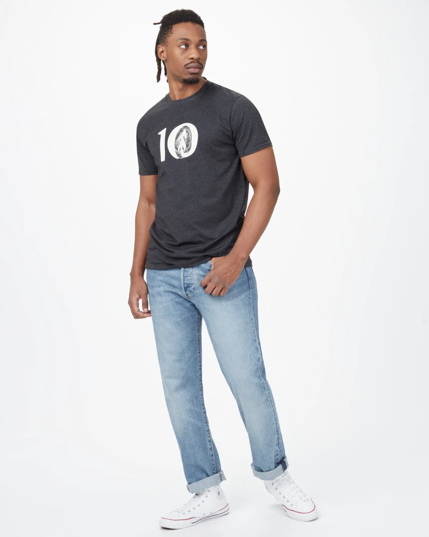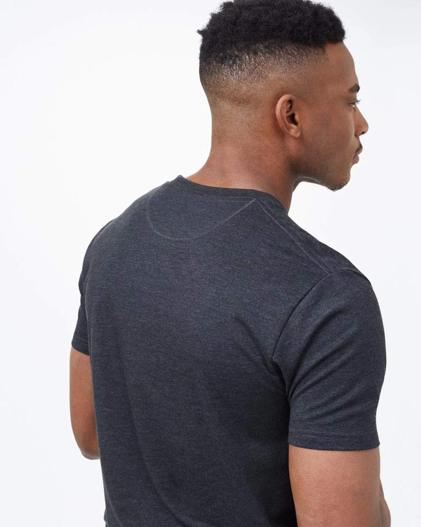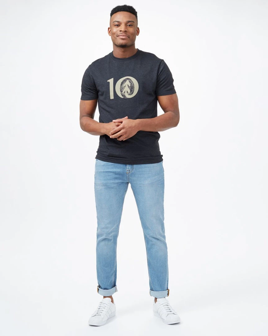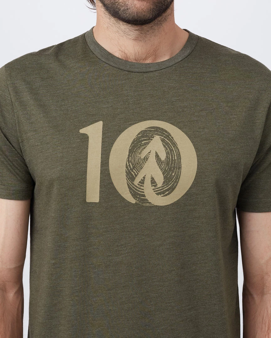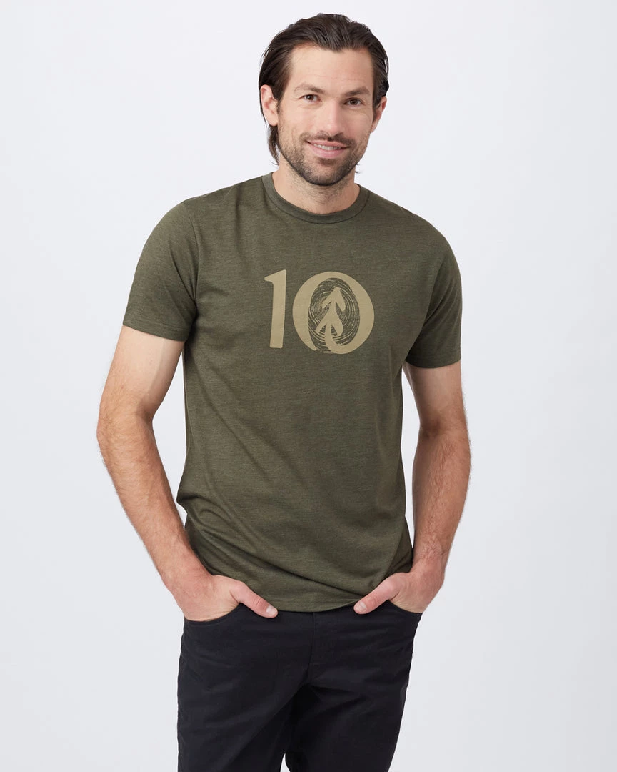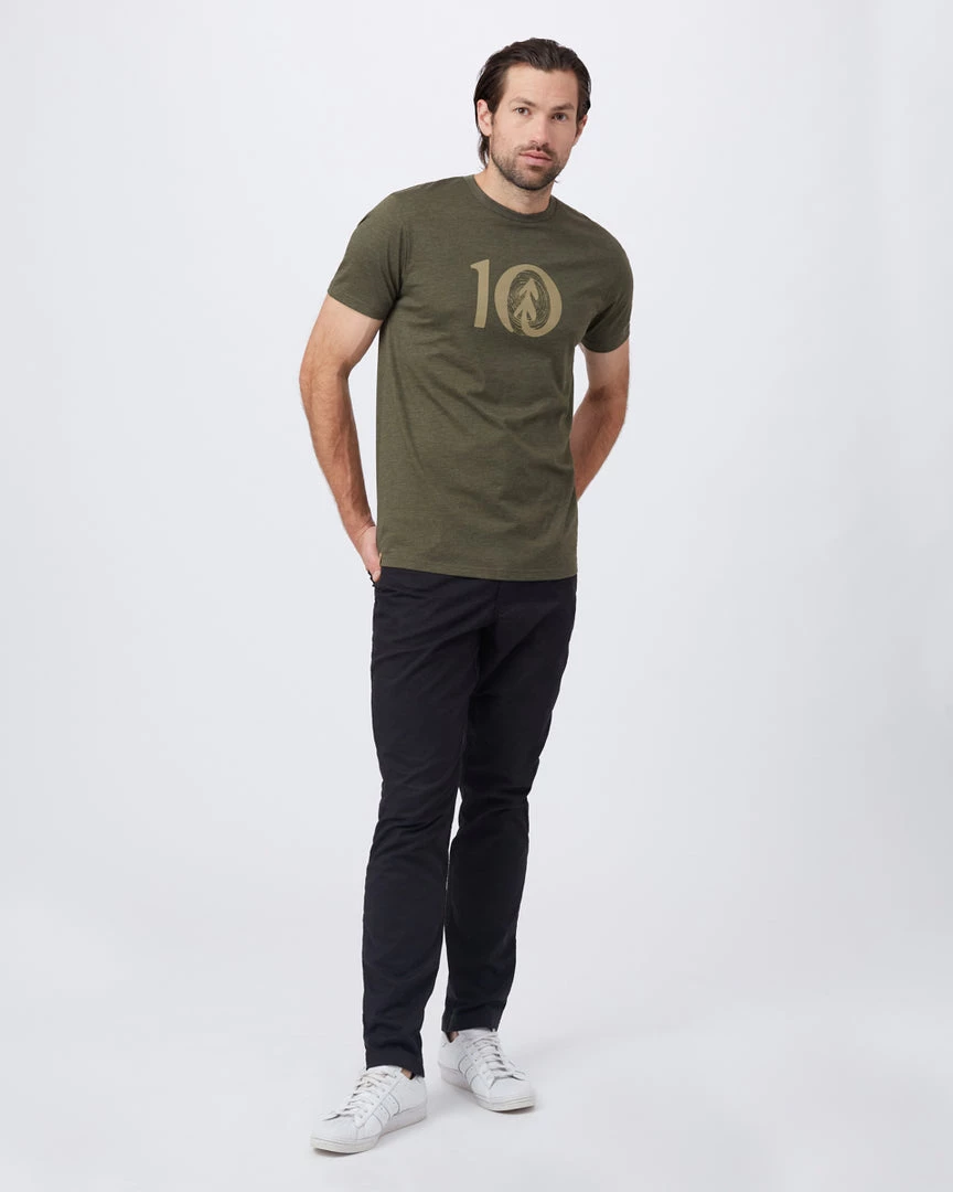 - Crewneck short sleeve t-shirt, ribbed neck, woodgrain tentree logo
