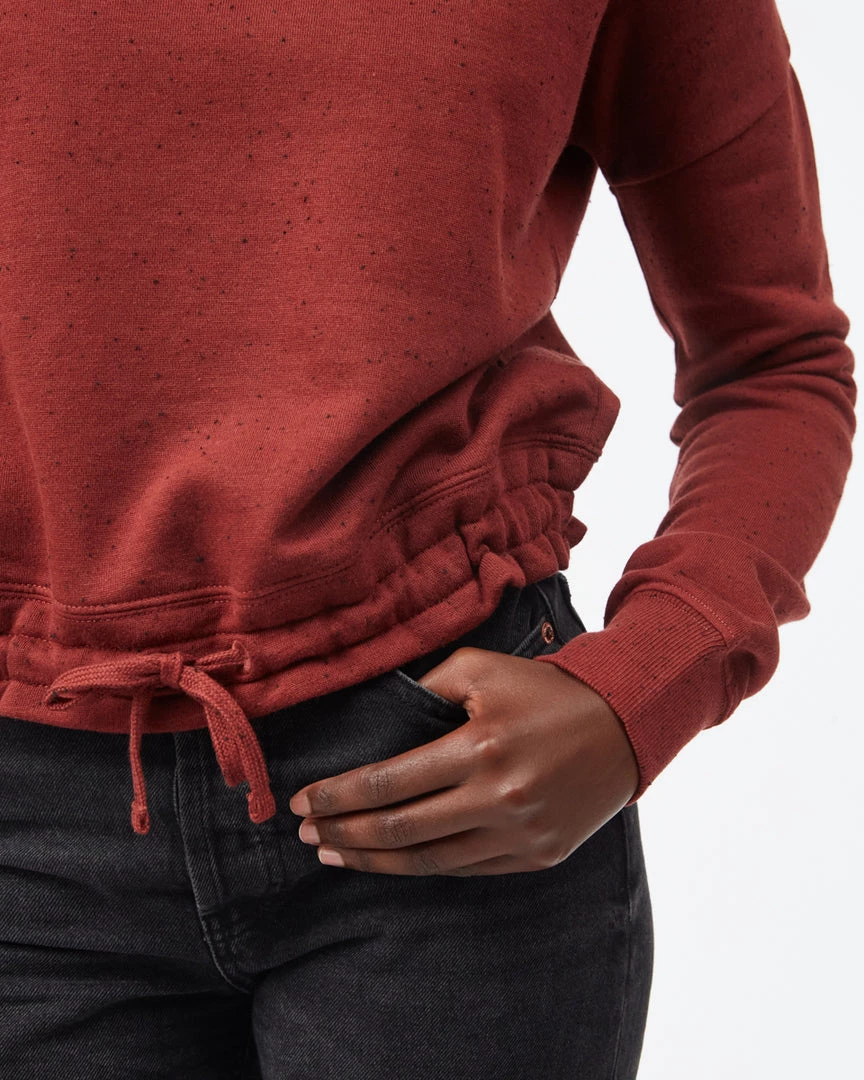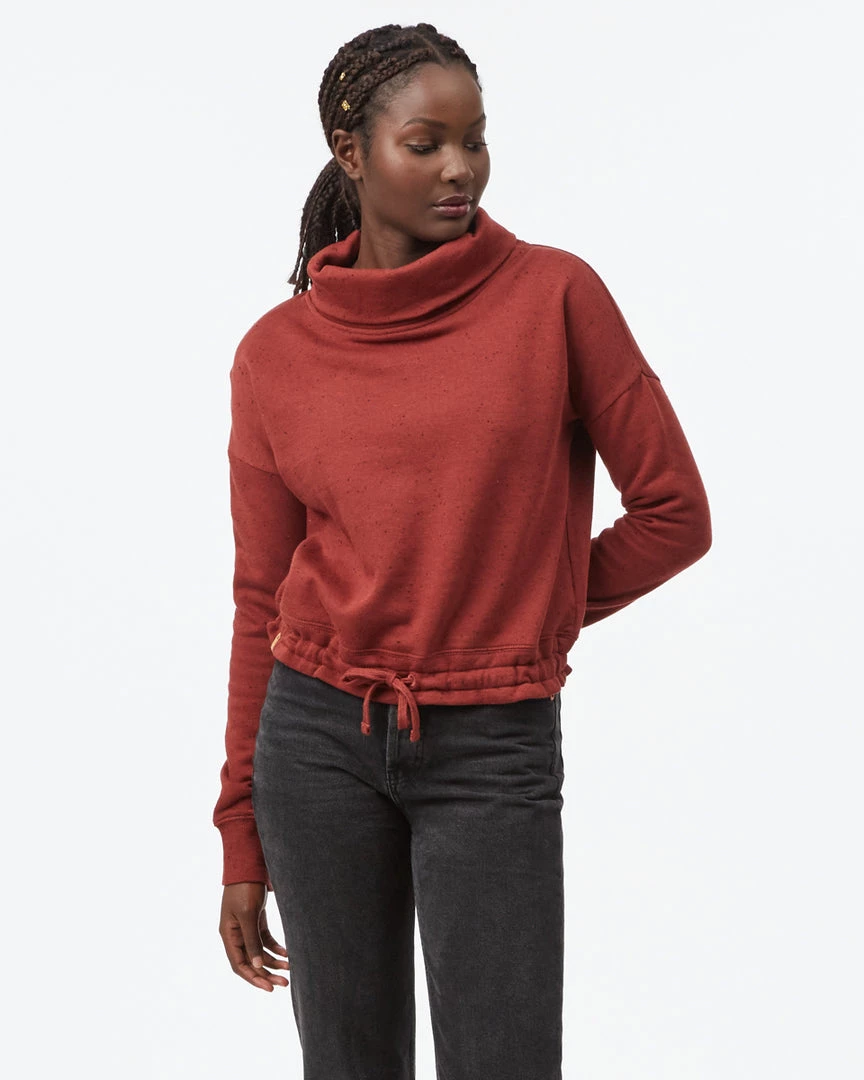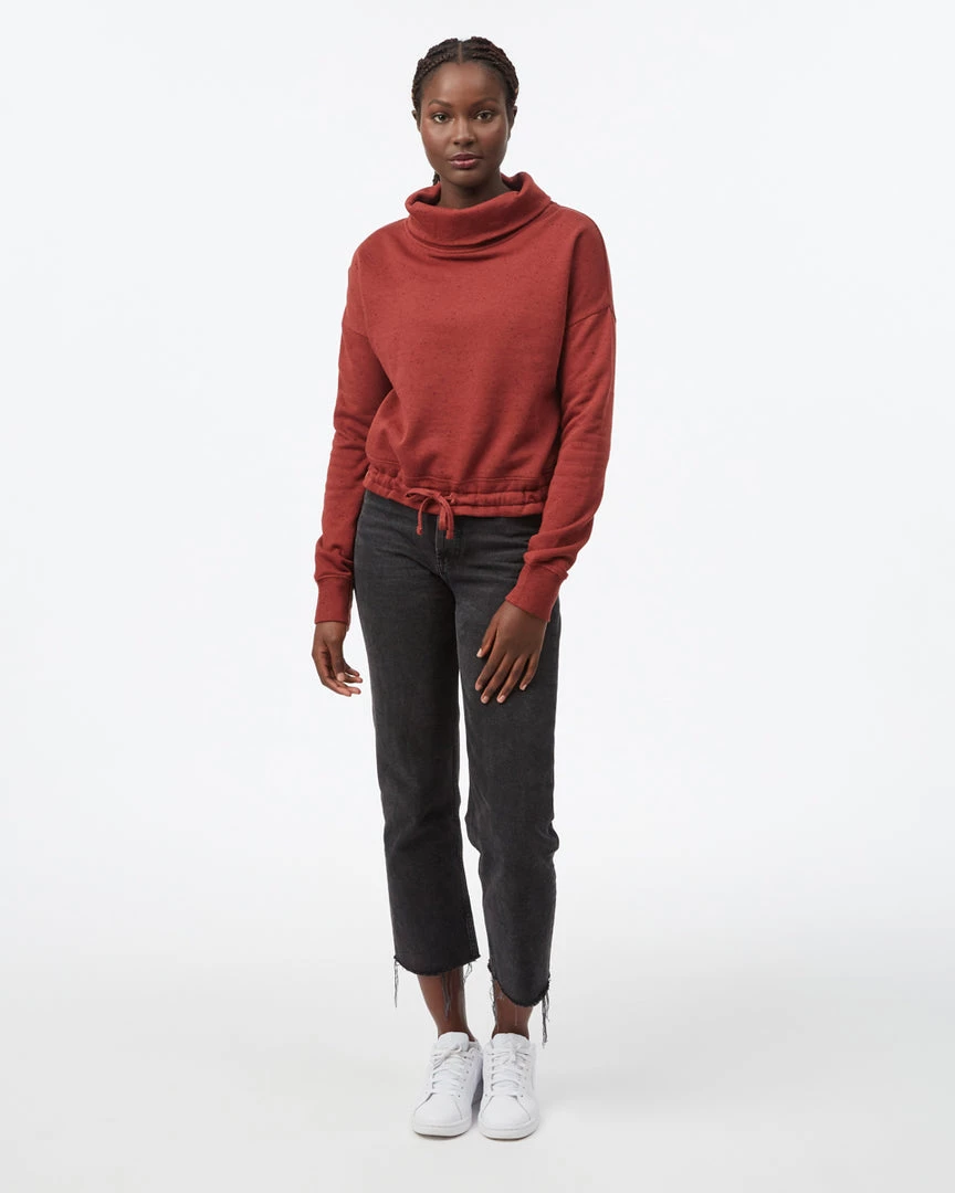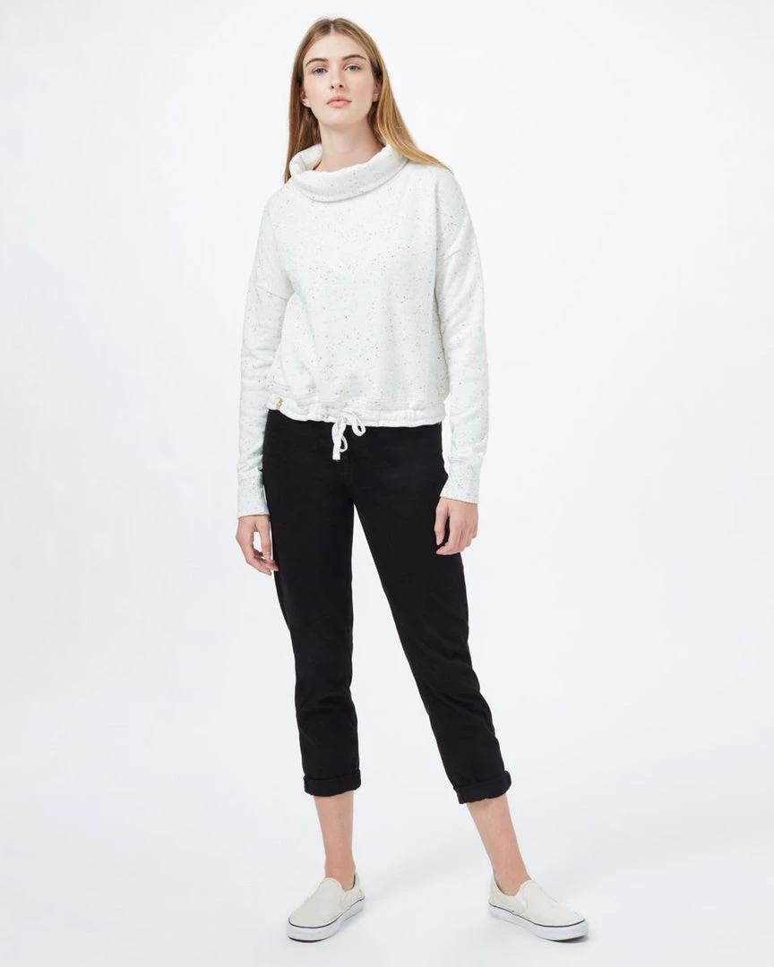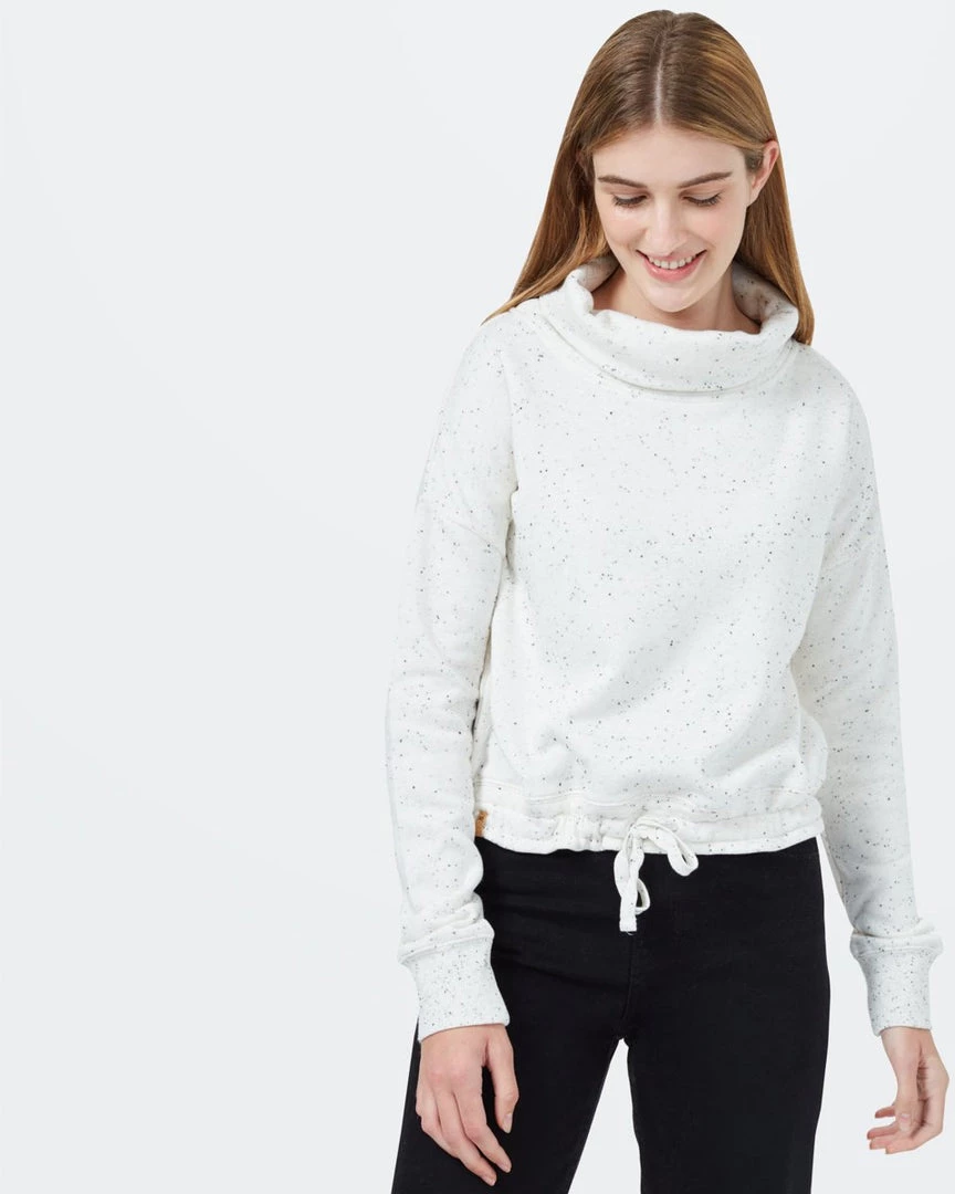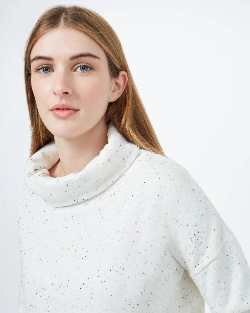 - Relaxed fit cowl neck longsleeve, dropped shoulder, drawcord hem, medium stretch