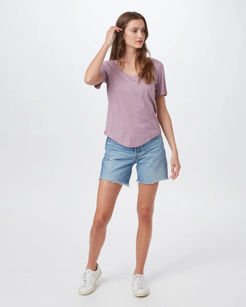 - V-Neck short sleeve t-shirt, scoop hi-low hem