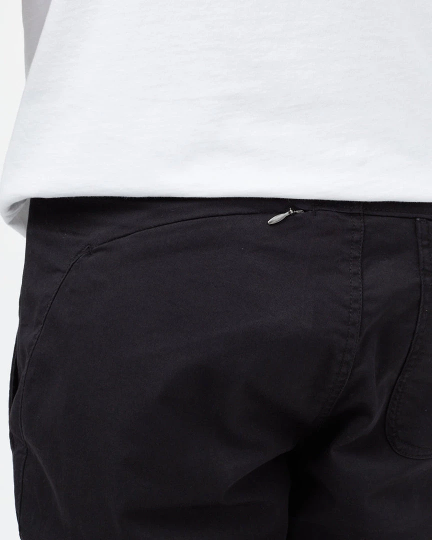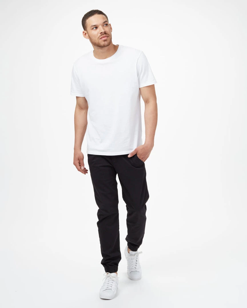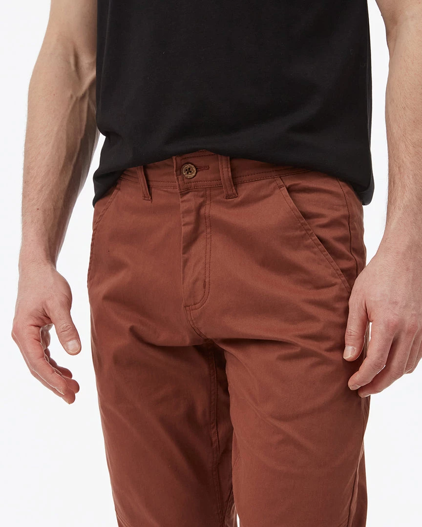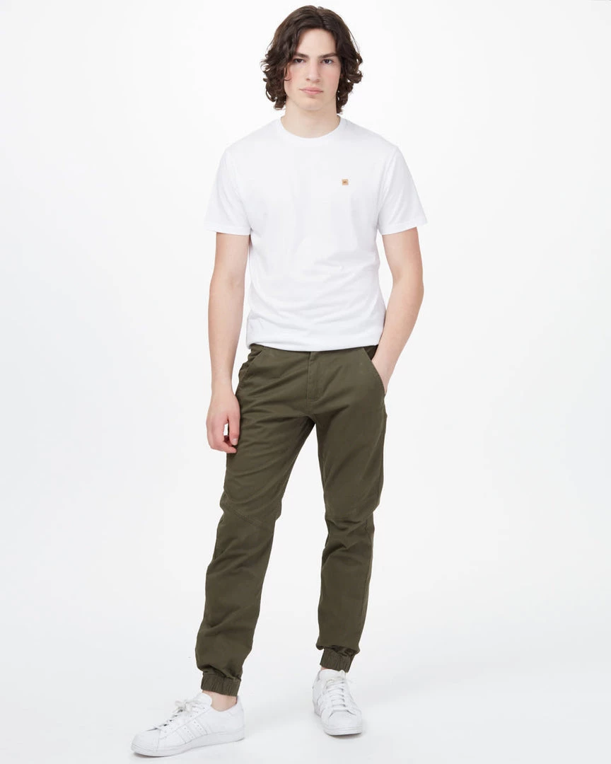 - Regular fit slim leg fixed waist jogger with elastic cuffs. Interior waist drawcord with zippered back left pocket and 30″ inseam (31″ on XL and XXL). Low stretch woven fabric.