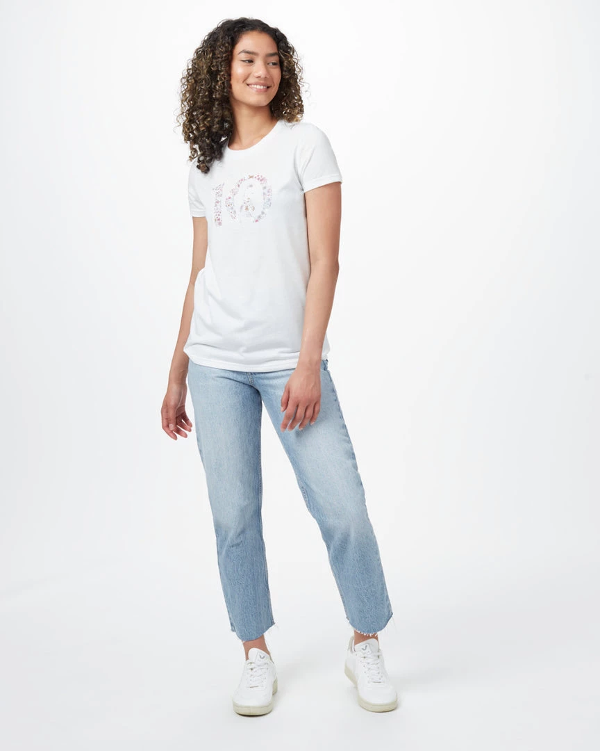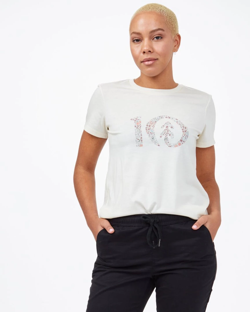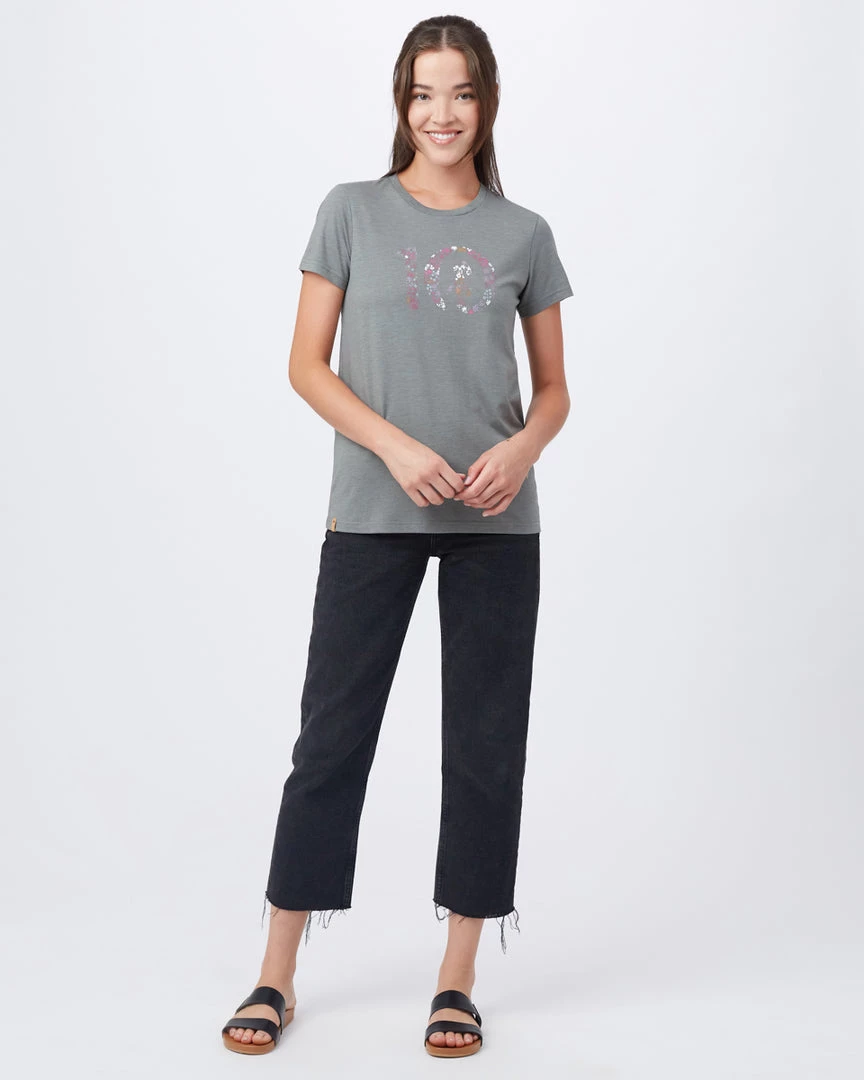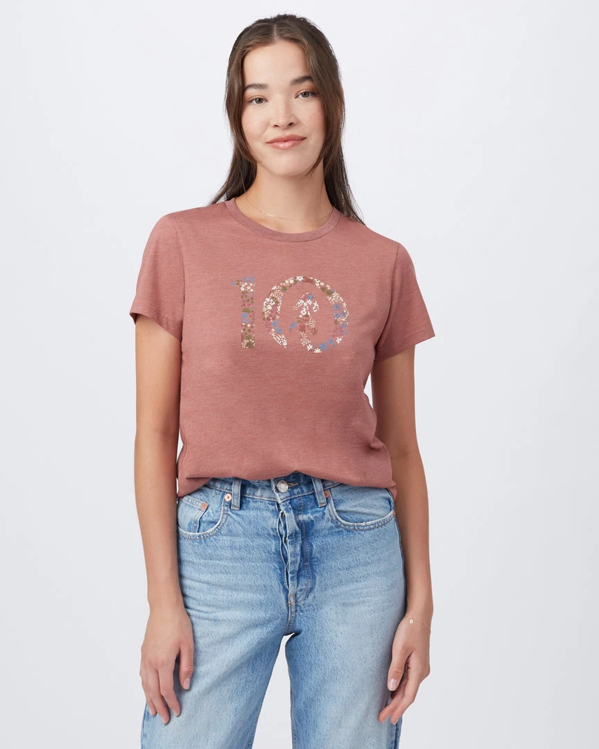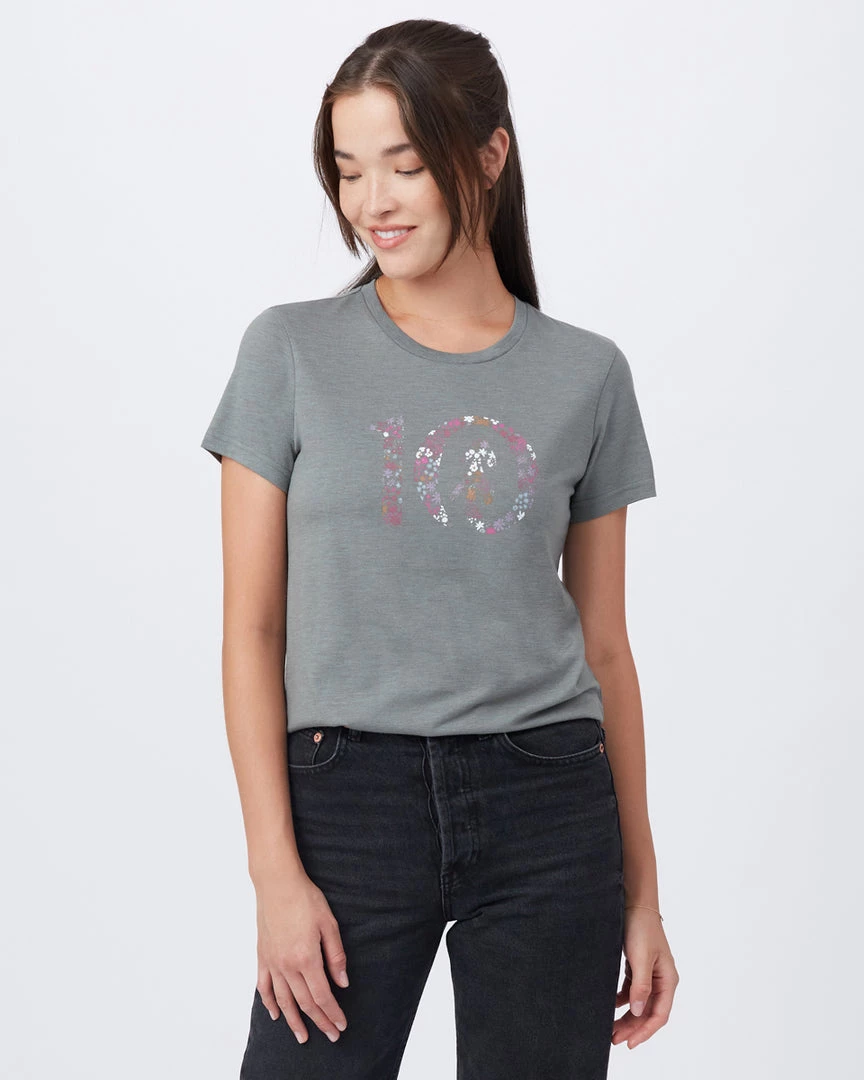 - Short sleeve crewneck t-shirt, ribbed neck, floral tentree logo