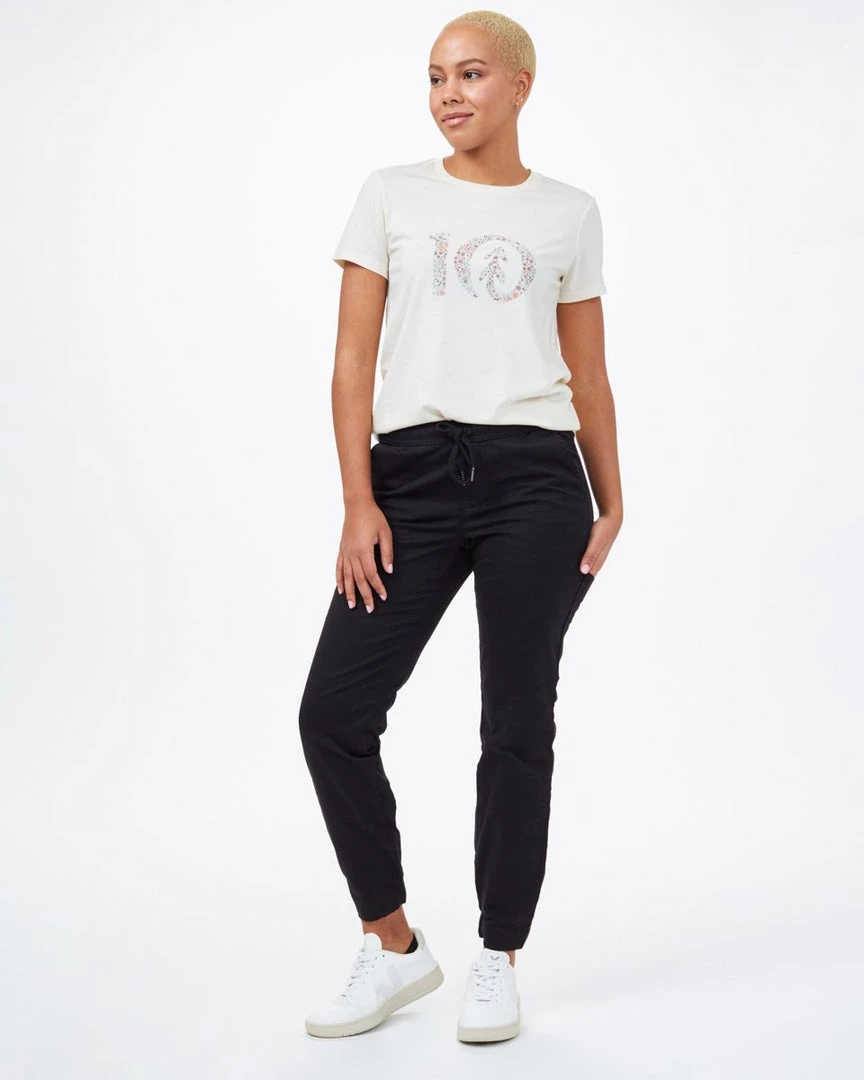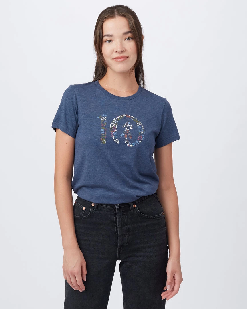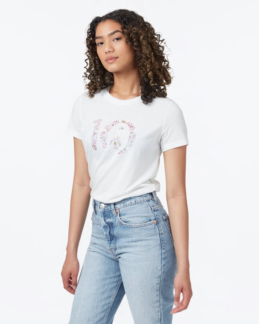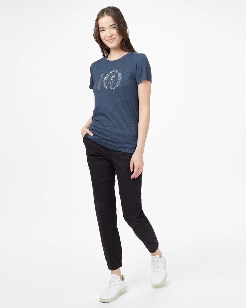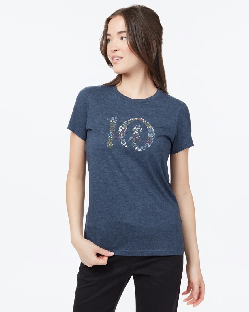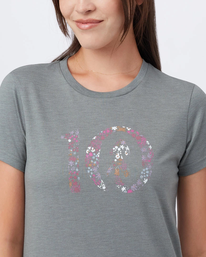 - Short sleeve crewneck t-shirt, ribbed neck, floral tentree logo