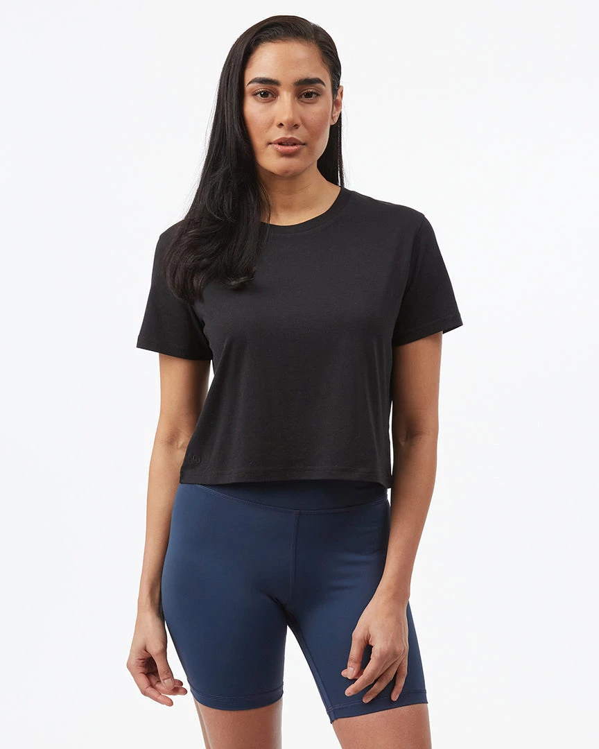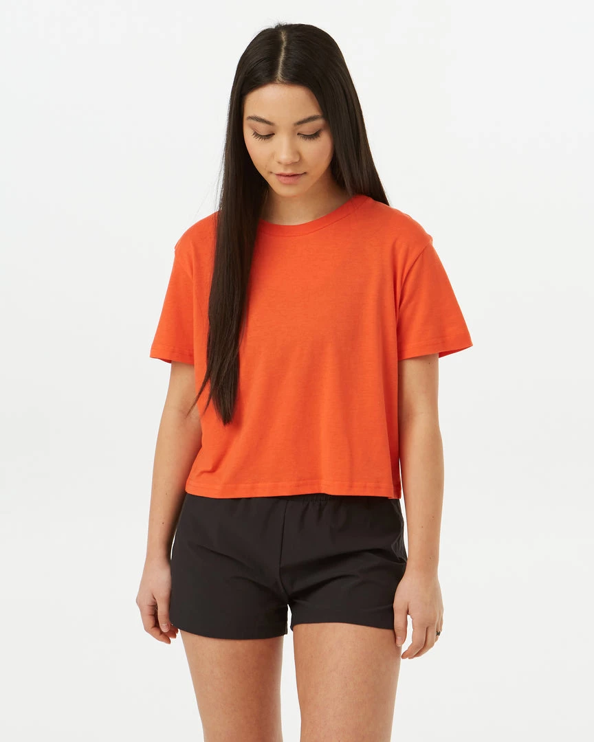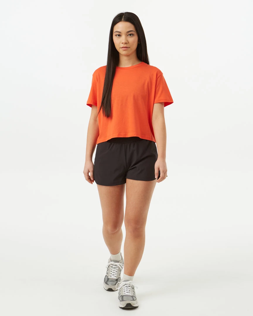 - Relaxed fit crew neck cropped t-shirt, ribbed neck band, medium stretch fabric