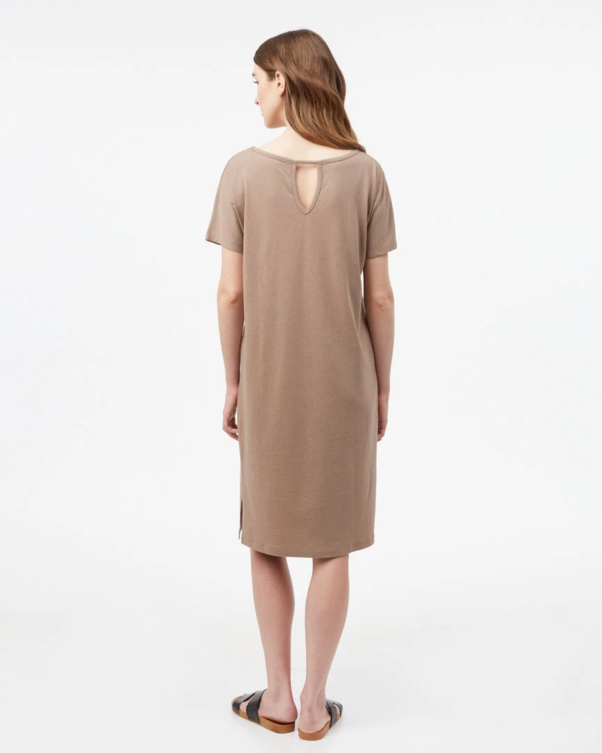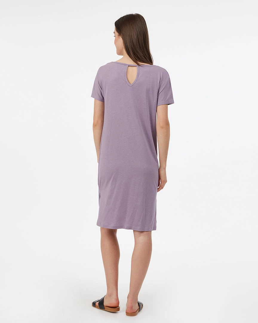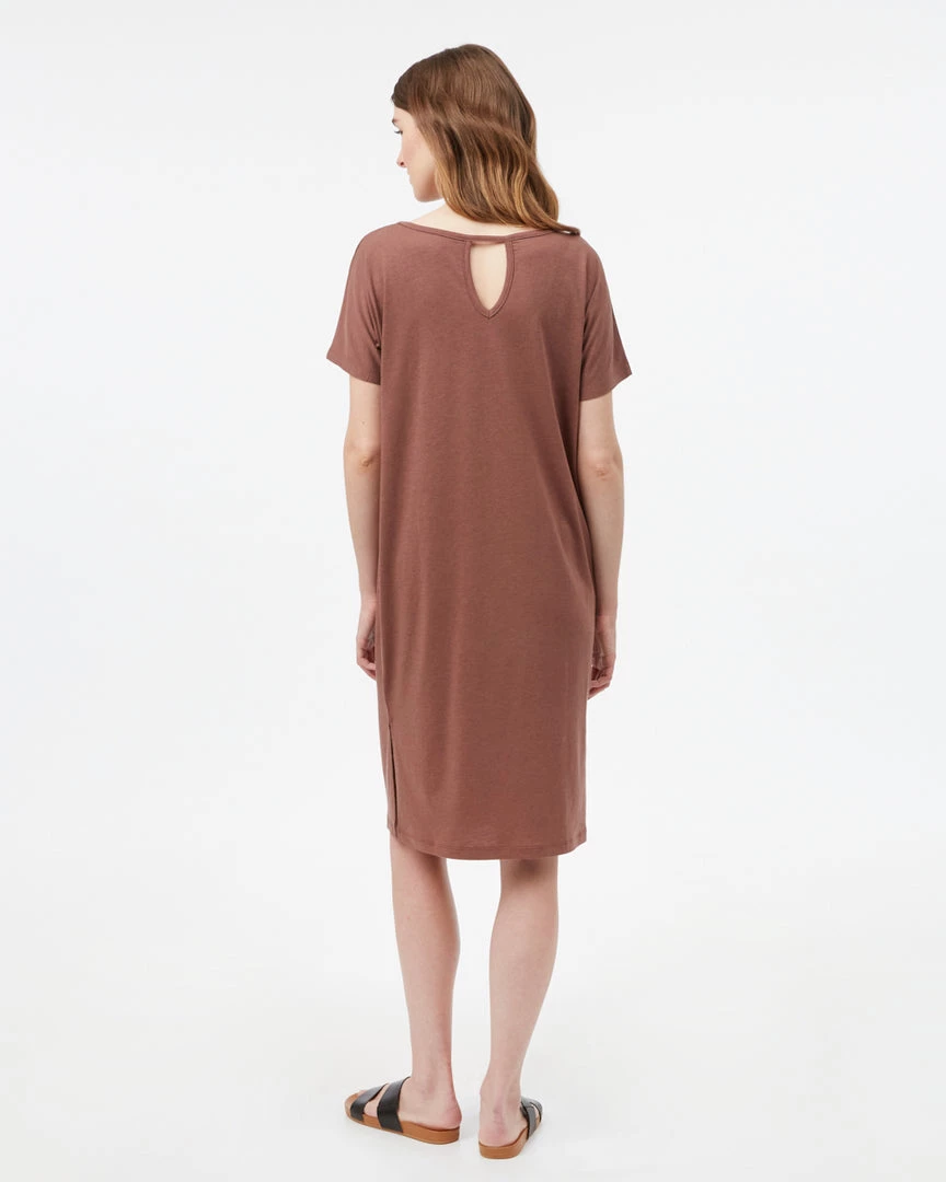 - Relaxed fit wide neck t-shirt dress, back neck keyhole, knee-length