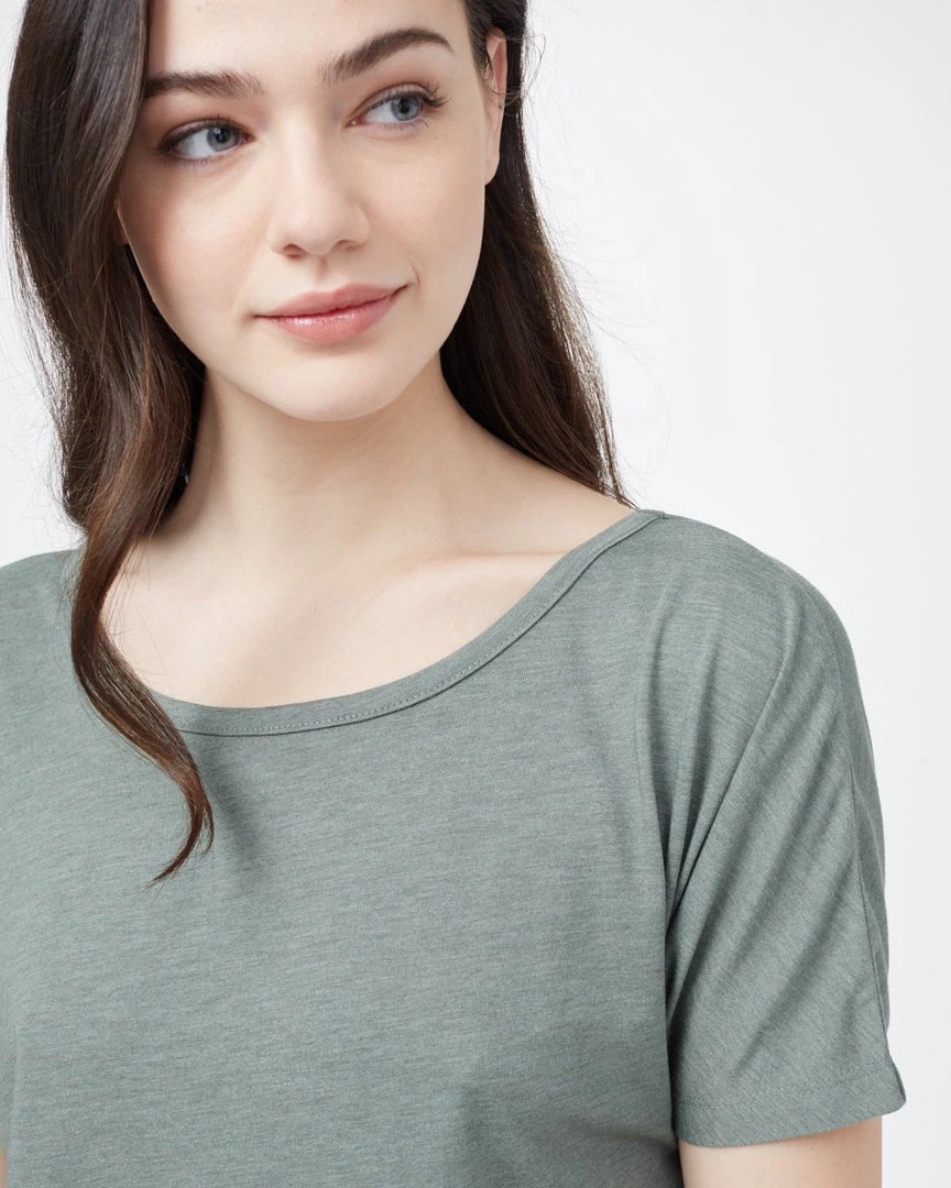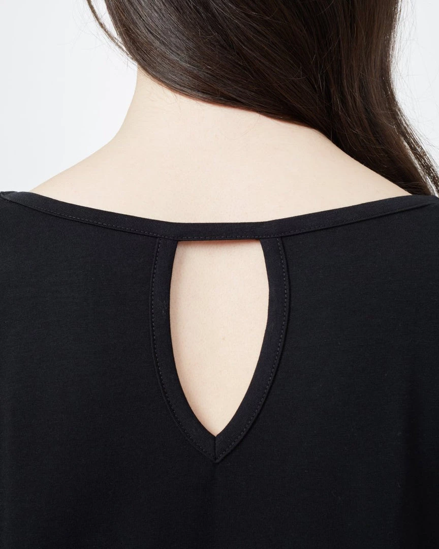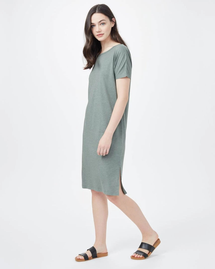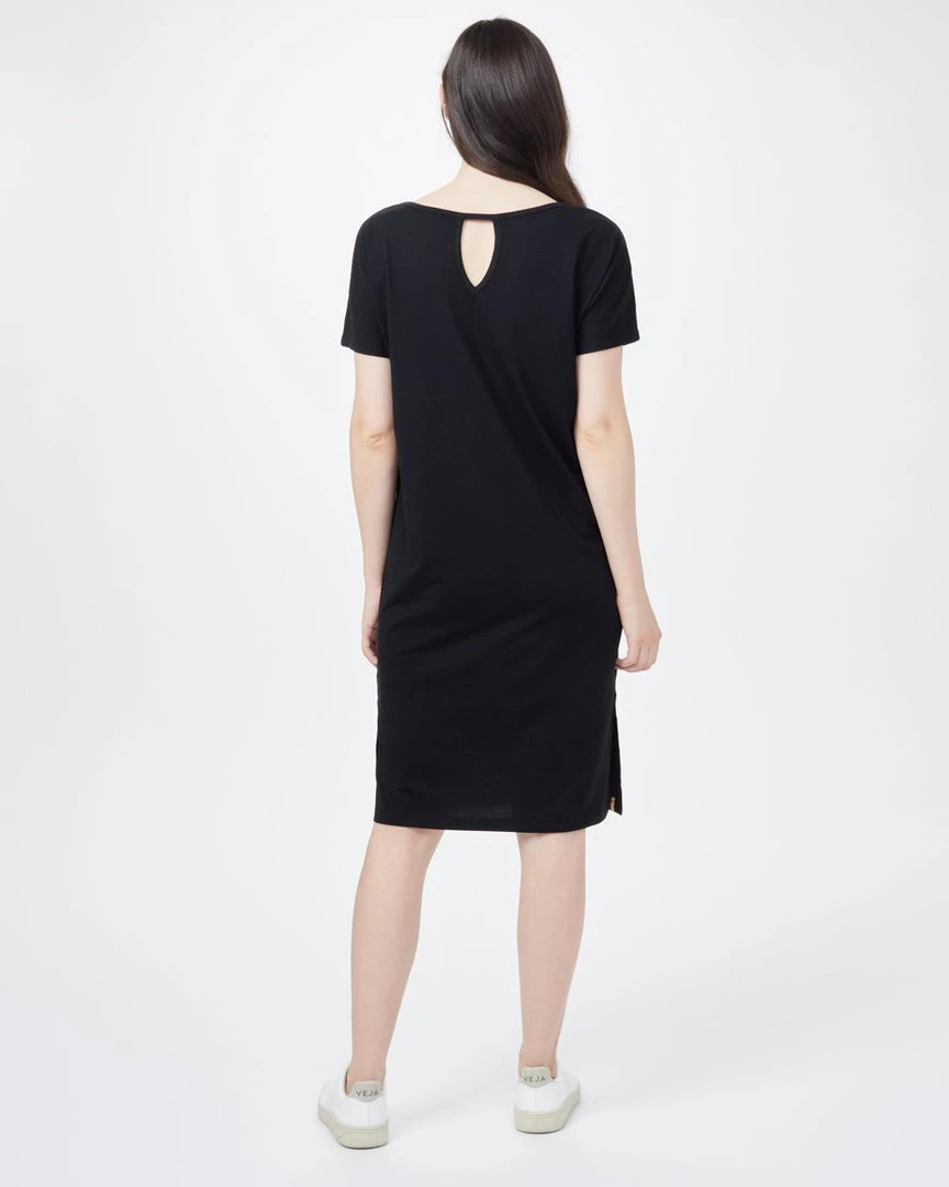 - Relaxed fit wide neck t-shirt dress, back neck keyhole, knee-length