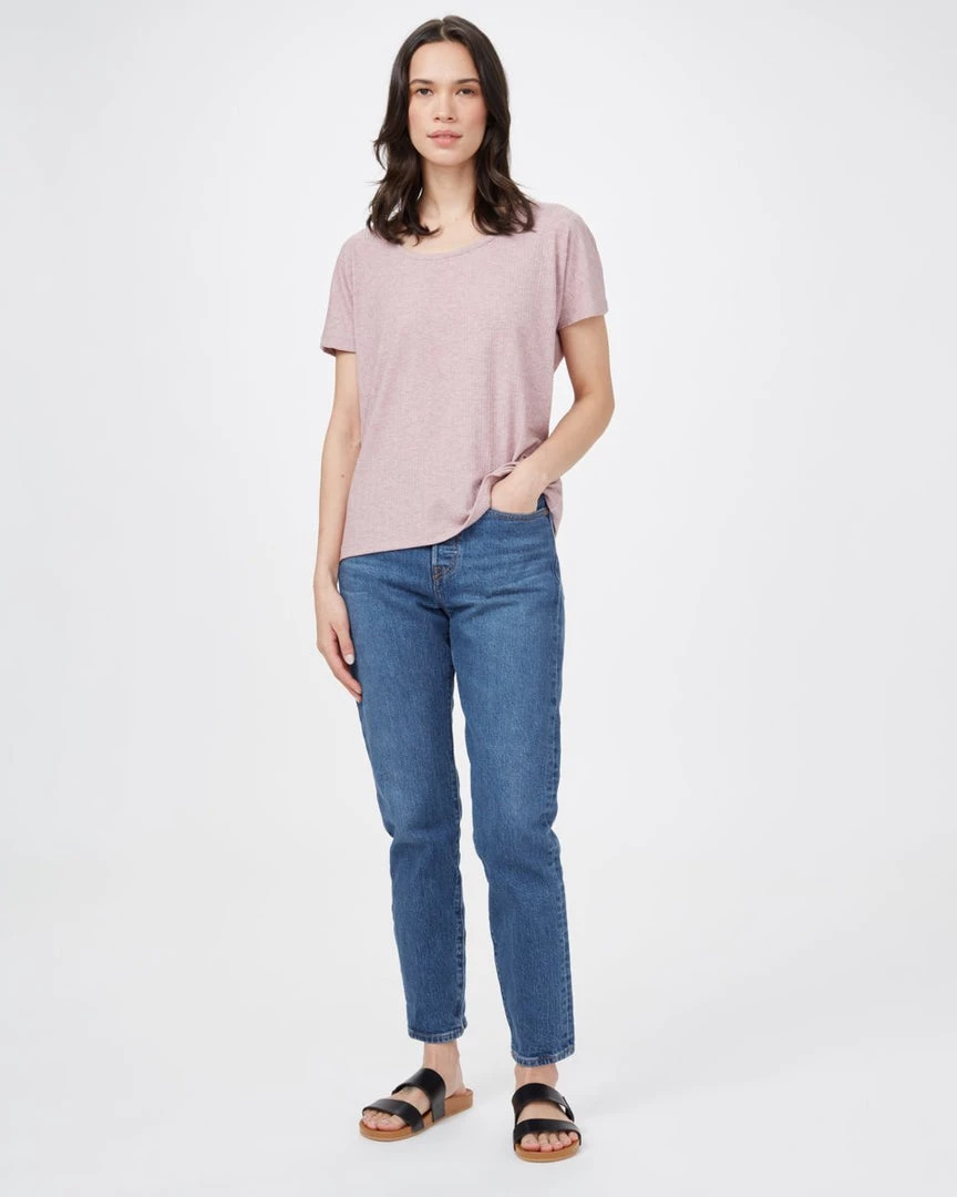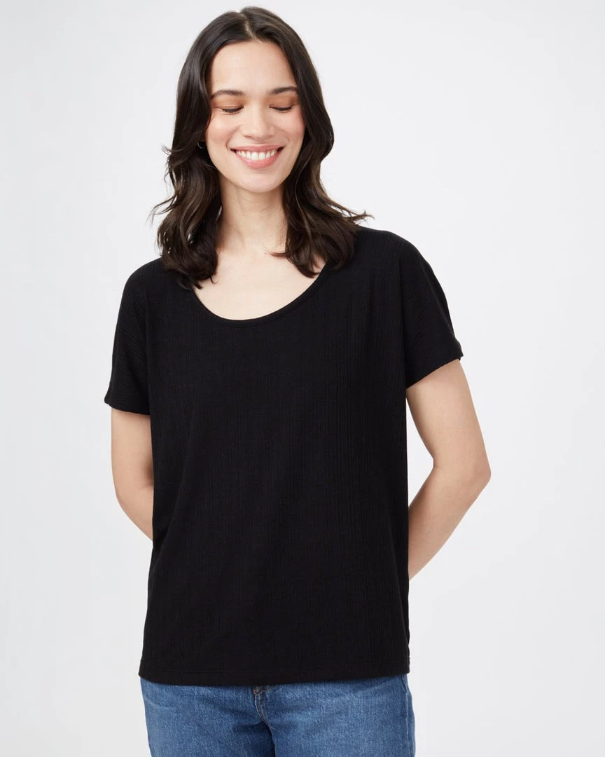 - Short sleeve scoop neck t-shirt, dolman sleeves